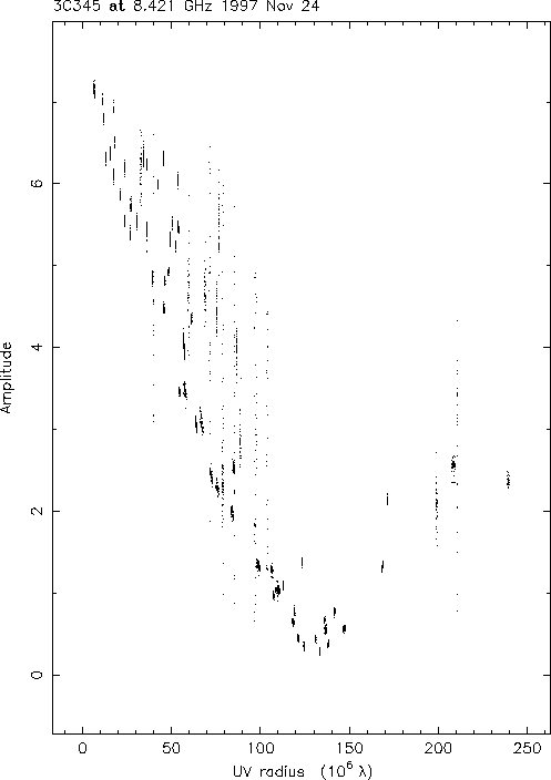 7. For 3C345 & 0234+285 (obs. TF015A.971124) at Q-band (7mm), we used DIFMAP to correct for abnormal amplitudes at SC.