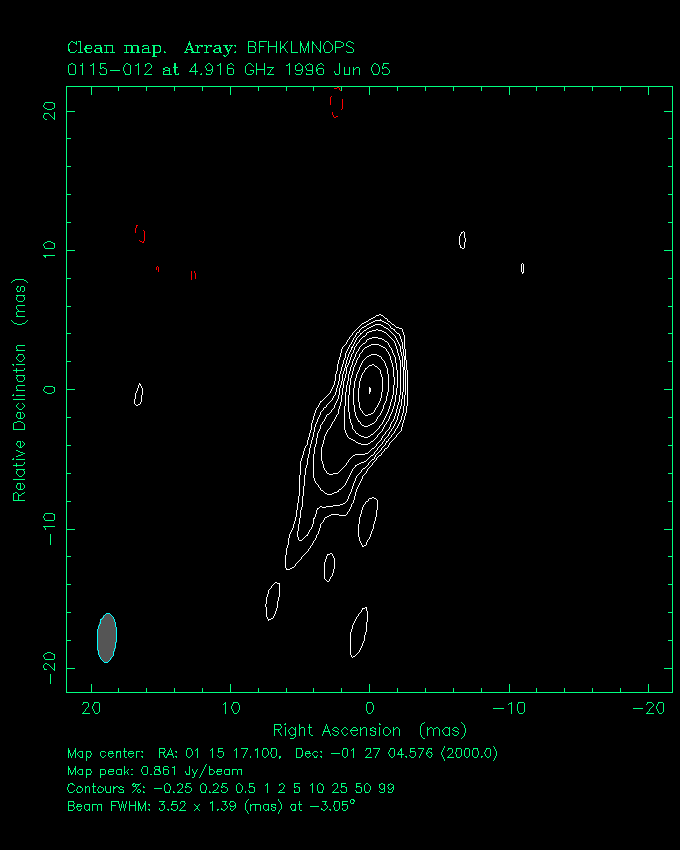 | 0112-017 | 1 h 15 m 17.0999 s | -1 ° 27 ´ 4.576 " | 1.6 Jy | quasar | 1.365 |