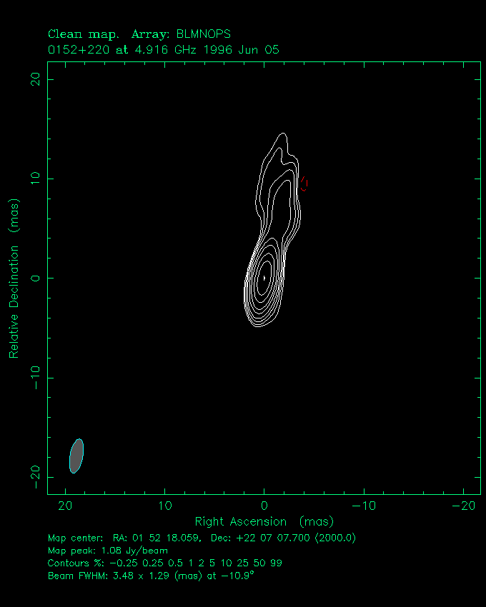 | 0149+218 | 1 h 52 m 18.0590 s | + 22 ° 7 ´ 7.700 " | 1.1 Jy | quasar | 1.320 |