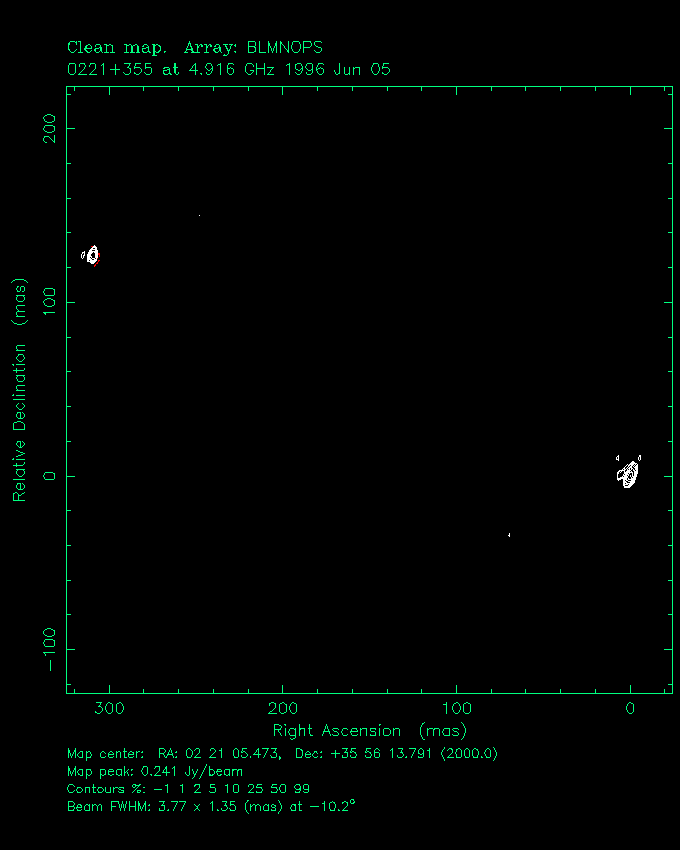 | flux density (Jy) | EW position (mas) | NS position (mas) | major axis (mas) | minor axis (mas) | position angle (°) |
