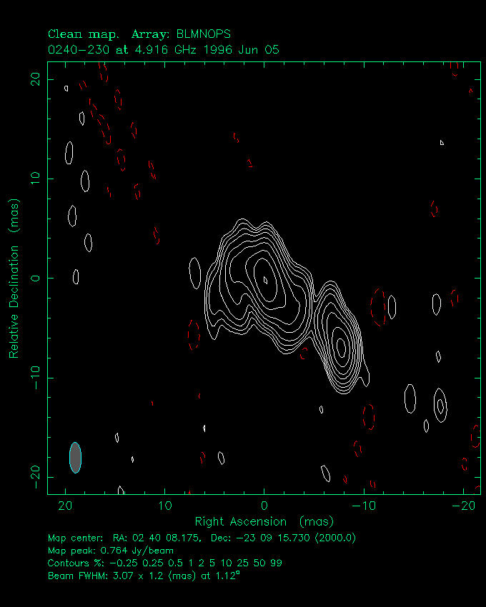 | 0237-233 | 2 h 40 m 8.1745 s | -23 ° 9 ´ 15.730 " | 3.6 Jy | quasar | 2.225 |