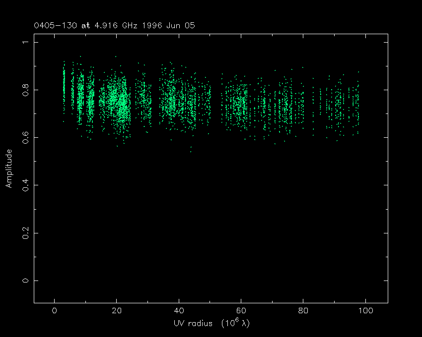 Correlated flux density (Jy) vs. projected baseline length plot