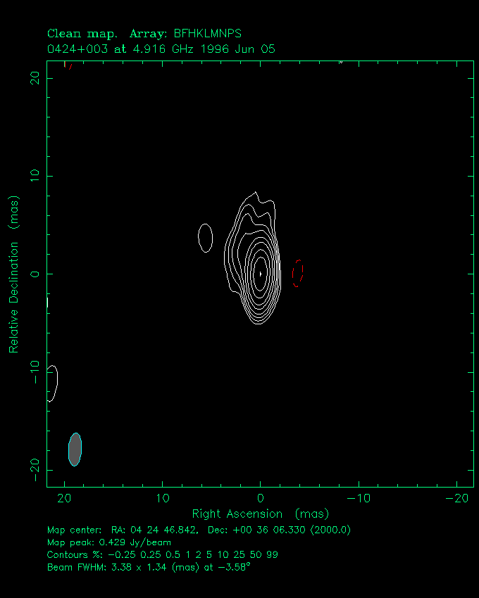 | 0422+004 | 4 h 24 m 46.8420 s | + 0 ° 36 ´ 6.330 " | 1.5 Jy | BL Lac | 0.310 |