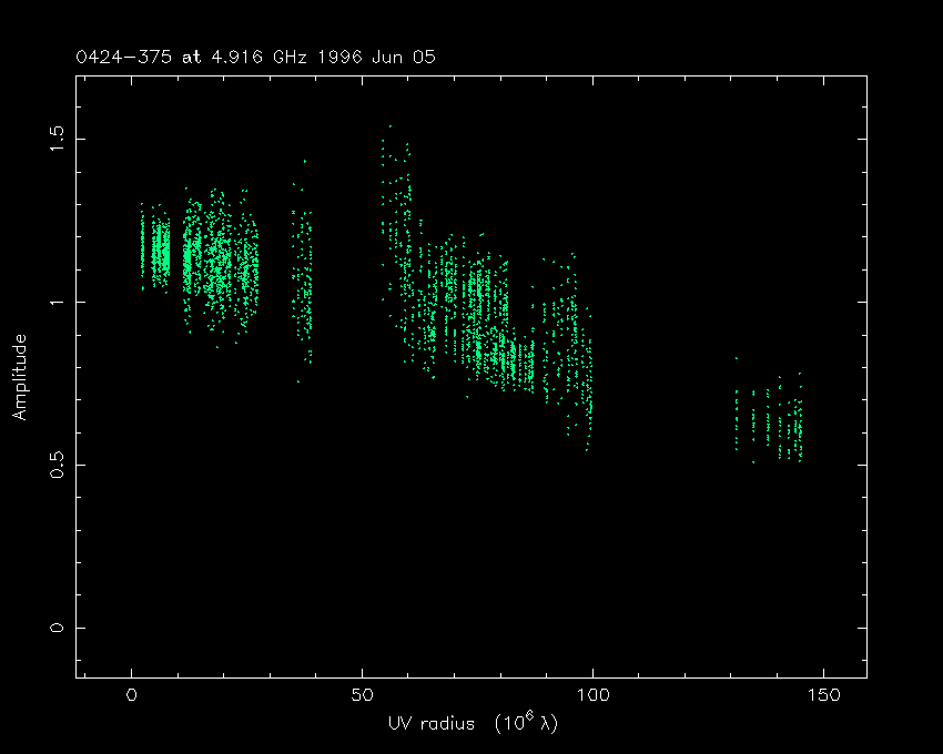 Correlated flux density (Jy) vs. projected baseline length plot