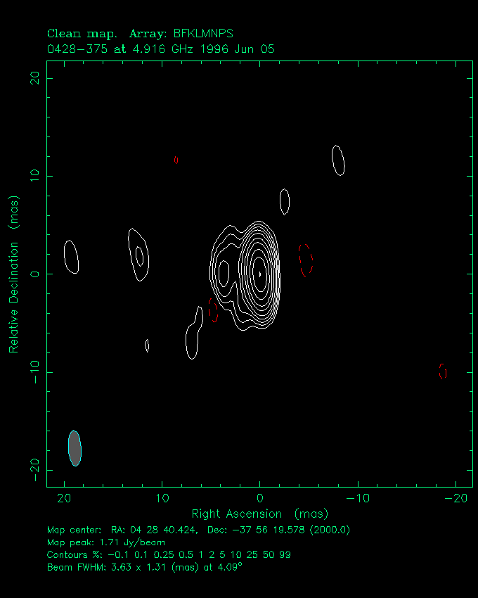 | flux density (Jy) | EW position (mas) | NS position (mas) | major axis (mas) | minor axis (mas) | position angle (°) |