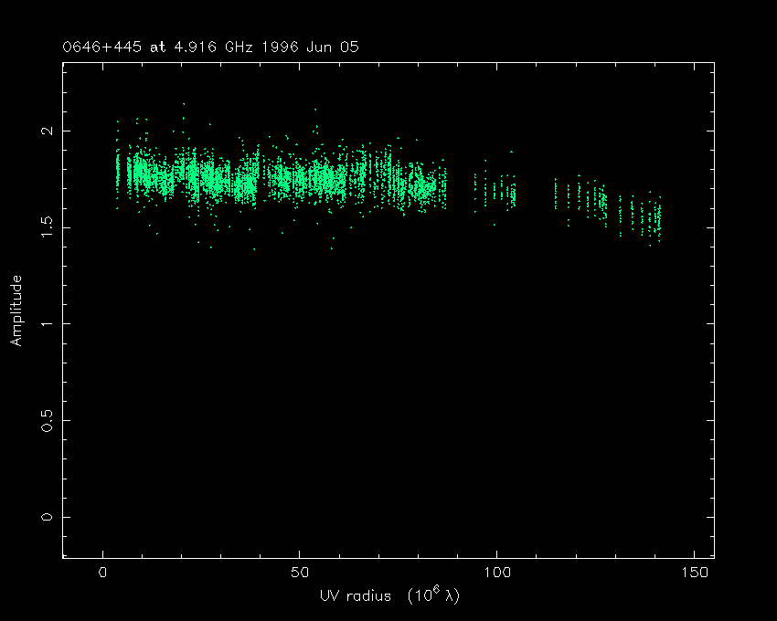 Correlated flux density (Jy) vs. projected baseline length plot