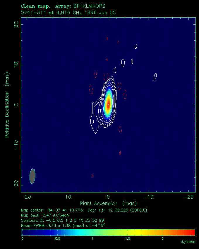 | 0738+313 | 7 h 41 m 10.7033 s | + 31 ° 12 ´ 0.229 " | 3.4 Jy | quasar | 0.630 |