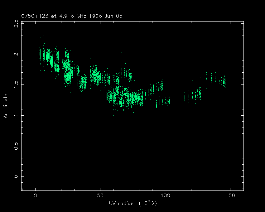 Correlated flux density (Jy) vs. projected baseline length plot