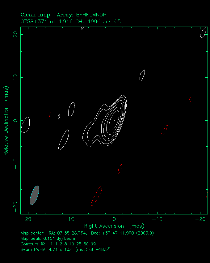 | flux density (Jy) | EW position (mas) | NS position (mas) | major axis (mas) | minor axis (mas) | position angle (°) |