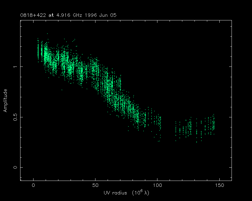 Correlated flux density (Jy) vs. projected baseline length plot