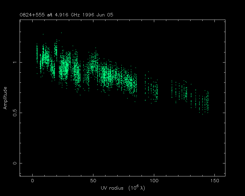 Correlated flux density (Jy) vs. projected baseline length plot