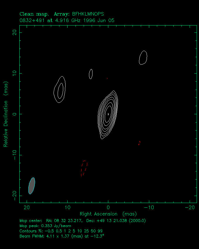 | flux density (Jy) | EW position (mas) | NS position (mas) | major axis (mas) | minor axis (mas) | position angle (°) |