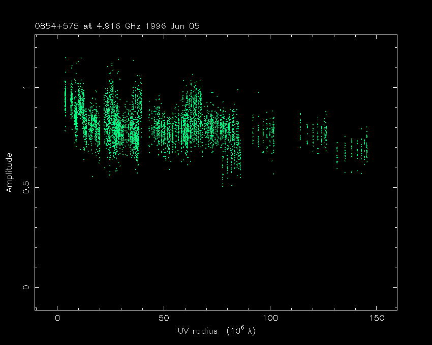 Correlated flux density (Jy) vs. projected baseline length plot