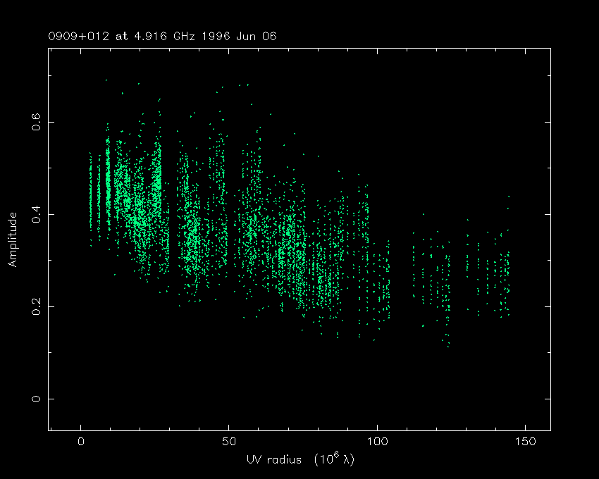 Correlated flux density (Jy) vs. projected baseline length plot