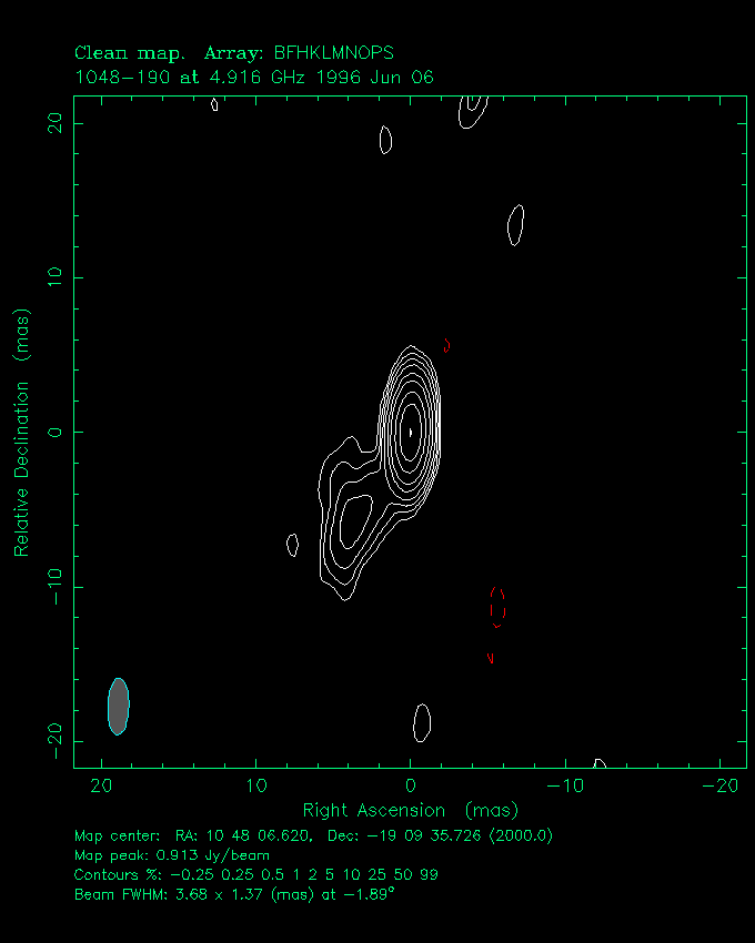 | 1045-188 | 10 h 48 m 6.6204 s | -19 ° 9 ´ 35.726 " | 1.1 Jy | quasar | 0.595 |