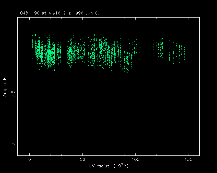Correlated flux density (Jy) vs. projected baseline length plot