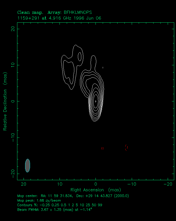 | 1156+295 | 11 h 59 m 31.8339 s | + 29 ° 14 ´ 43.827 " | 1.8 Jy | quasar | 0.729 |