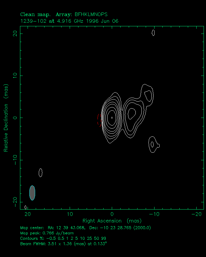 | 1237-101 | 12 h 39 m 43.062 s * | -10 ° 23 ´ 28.70 " | 1.3 Jy | quasar | 0.750 |