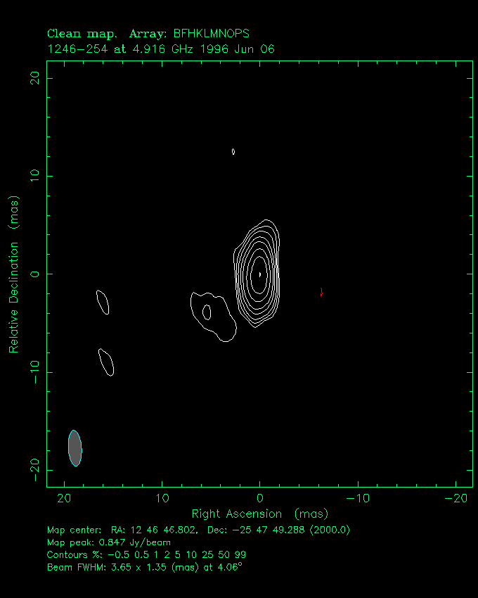 | 1244-255 | 12 h 46 m 46.8020 s | -25 ° 47 ´ 49.288 " | 2.3 Jy | quasar | 0.638 |