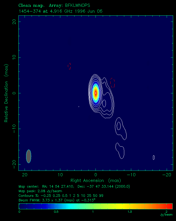 | 1451-375 | 14 h 54 m 27.4097 s | -37 ° 47 ´ 33.144 " | 2.4 Jy | quasar | 0.314 |