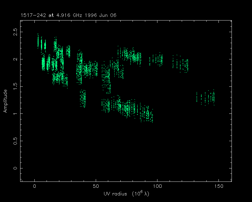 Correlated flux density (Jy) vs. projected baseline length plot