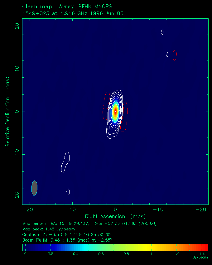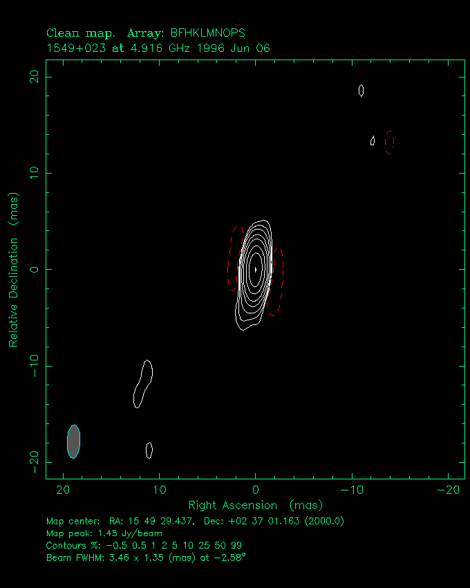 | 1546+027 | 15 h 49 m 29.4368 s | + 2 ° 37 ´ 1.163 " | 1.5 Jy | quasar | 0.412 |