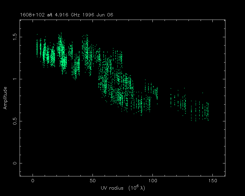 Correlated flux density (Jy) vs. projected baseline length plot