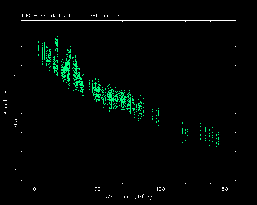 Correlated flux density (Jy) vs. projected baseline length plot