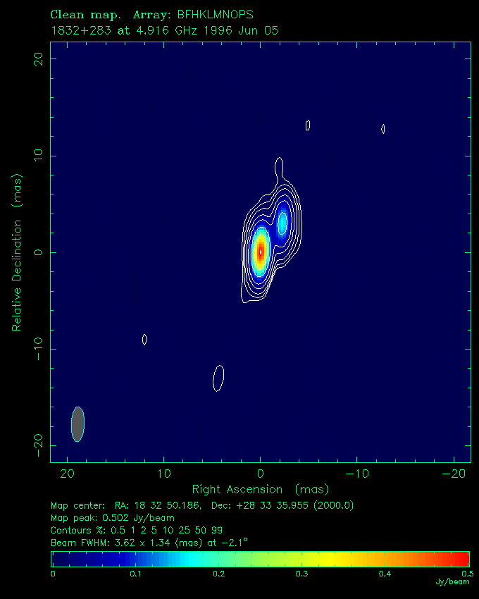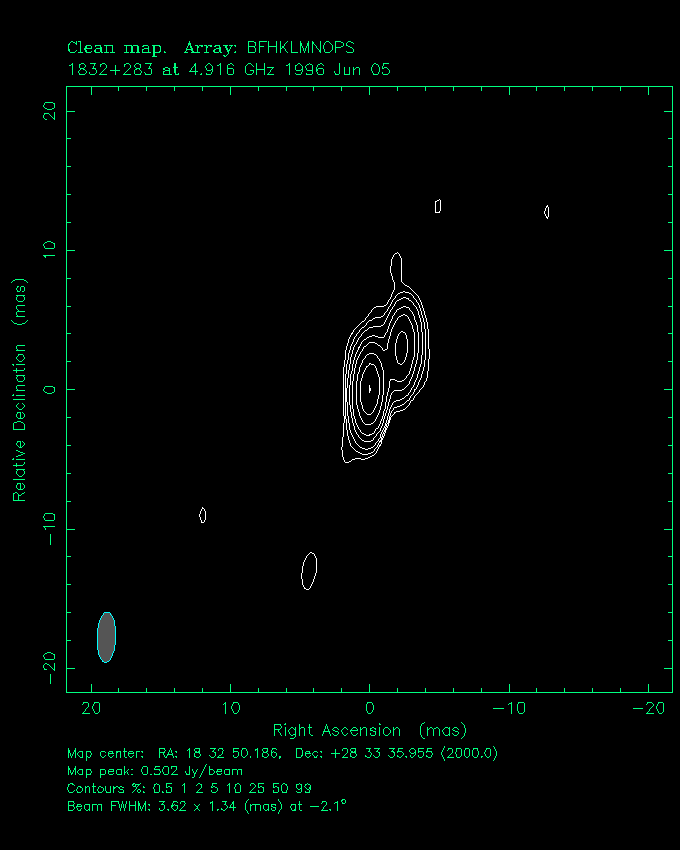 | 1830+285 | 18 h 32 m 50.1856 s | + 28 ° 33 ´ 35.955 " | 1.1 Jy | quasar | 0.594 |