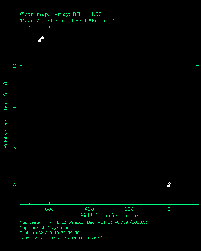 | 1830-211 | 18 h 33 m 39.886 s * | -21 ° 3 ´ 40.57 " | 7.9 Jy | quasar | 2.507 |