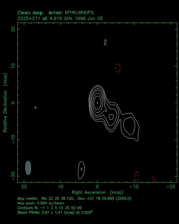 | flux density (Jy) | EW position (mas) | NS position (mas) | major axis (mas) | minor axis (mas) | position angle (°) |
