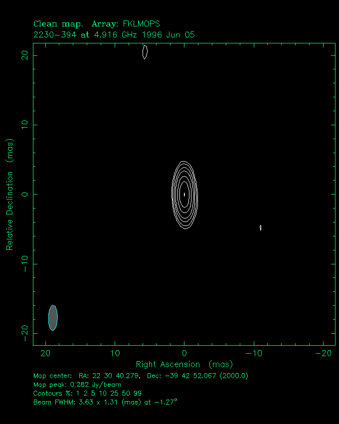 | flux density (Jy) | EW position (mas) | NS position (mas) | major axis (mas) | minor axis (mas) | position angle (°) |
