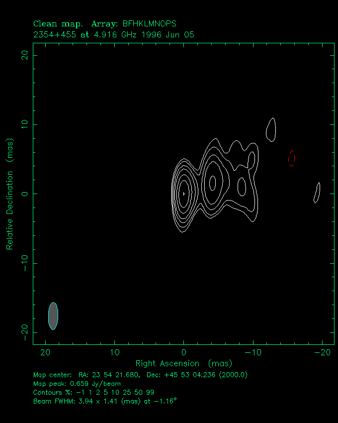 | 2351+456 | 23 h 54 m 21.6802 s | + 45 ° 53 ´ 4.236 " | 1.2 Jy | quasar | 1.986 |