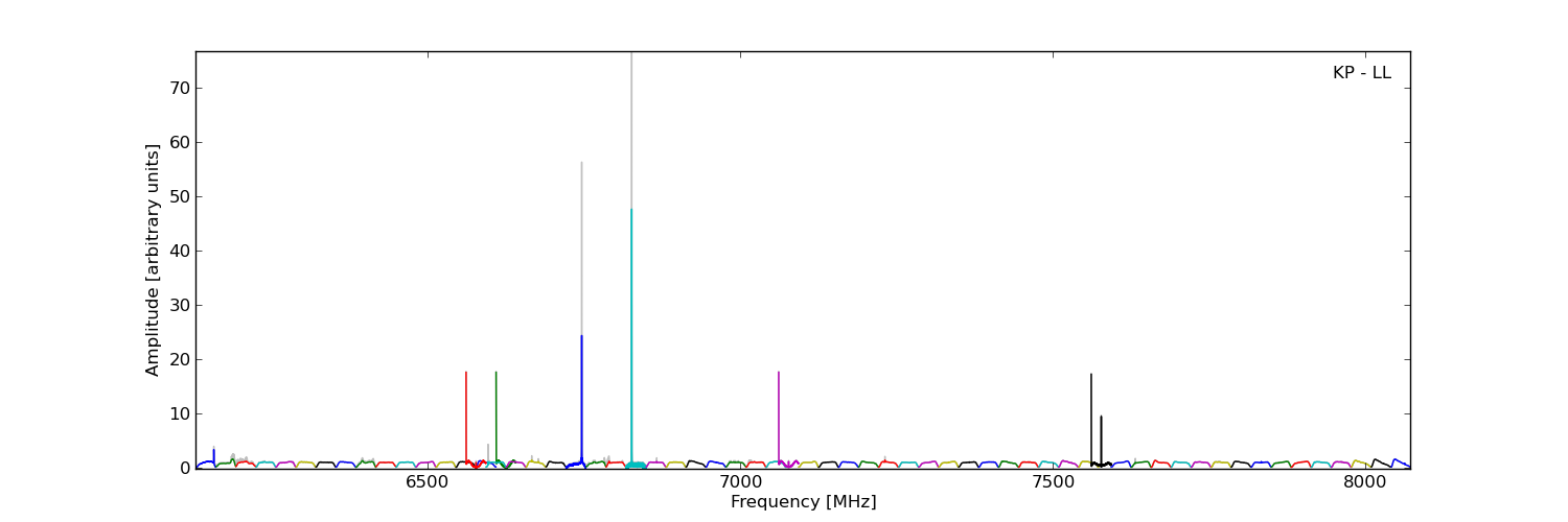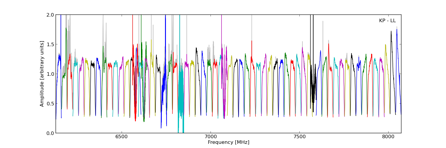 Total power spectrum in arbitrary units. The solid lines indicate the mean value and the shaded area the peaks.