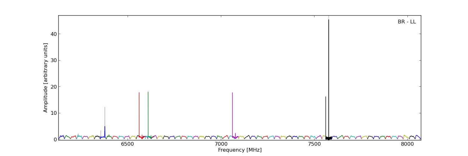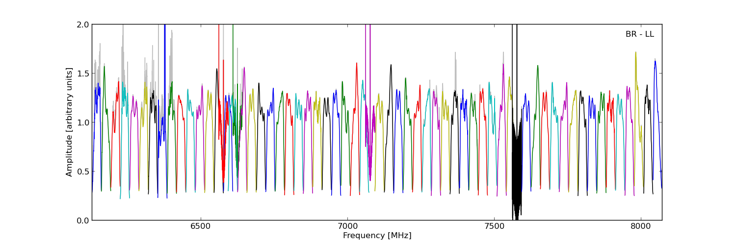 Total power spectrum in arbitrary units. The solid lines indicate the mean value and the shaded area the peaks.