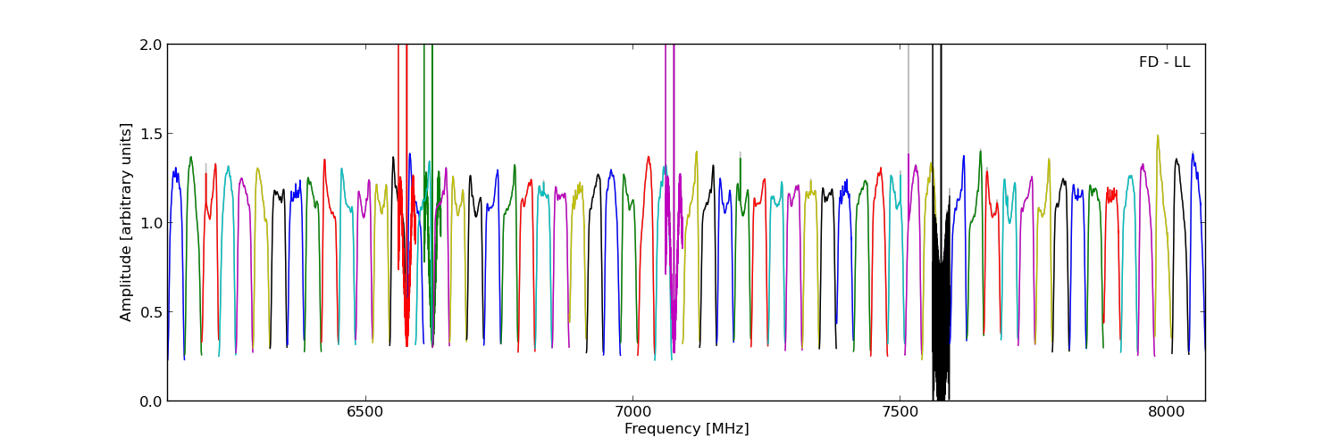 Total power spectrum in arbitrary units. The solid lines indicate the mean value and the shaded area the peaks.