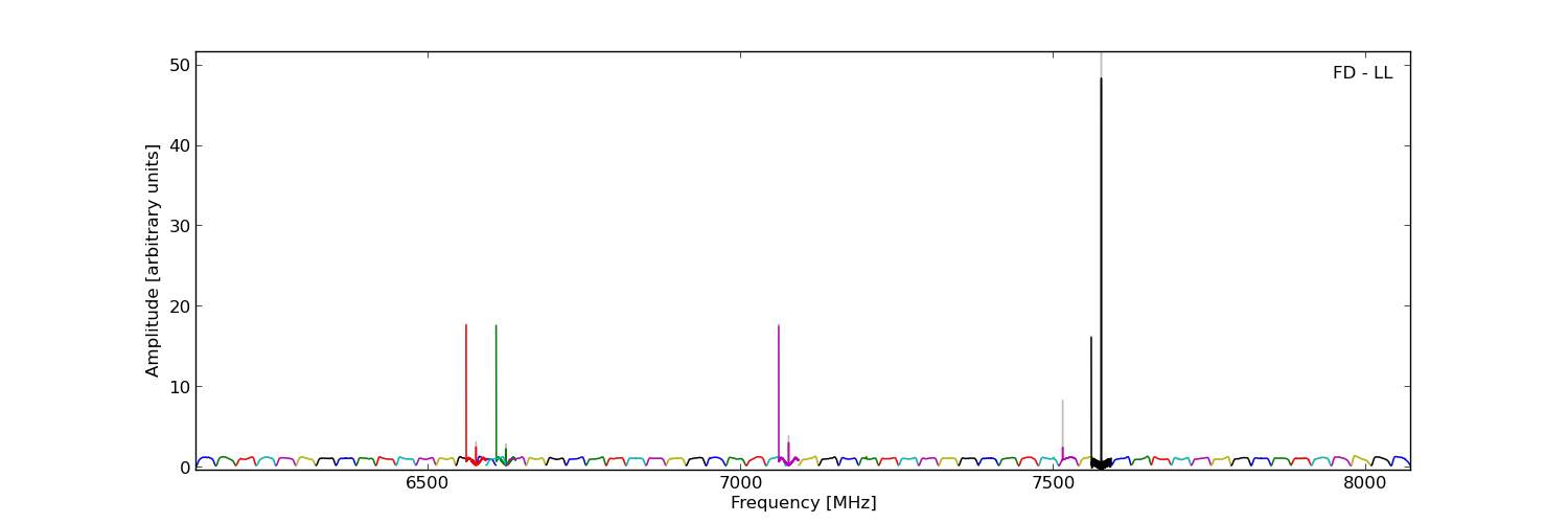 Total power spectrum in arbitrary units. The solid lines indicate the mean value and the shaded area the peaks.