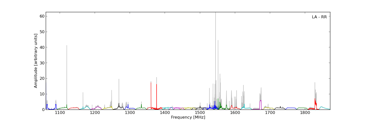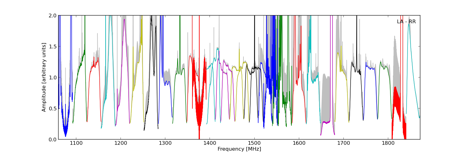 Total power spectrum in arbitrary units. The solid lines indicate the mean value and the shaded area the peaks.