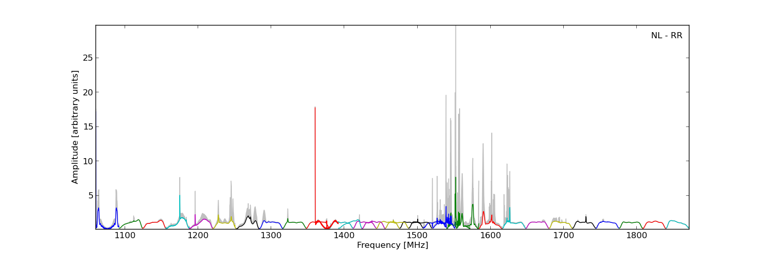 Total power spectrum in arbitrary units. The solid lines indicate the mean value and the shaded area the peaks.