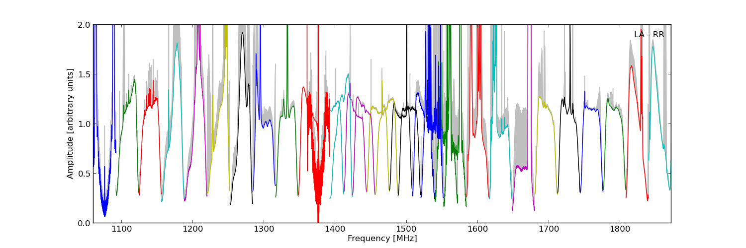Total power spectrum in arbitrary units. The solid lines indicate the mean value and the shaded area the peaks.