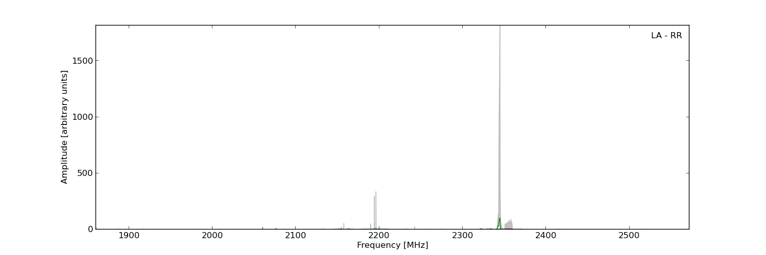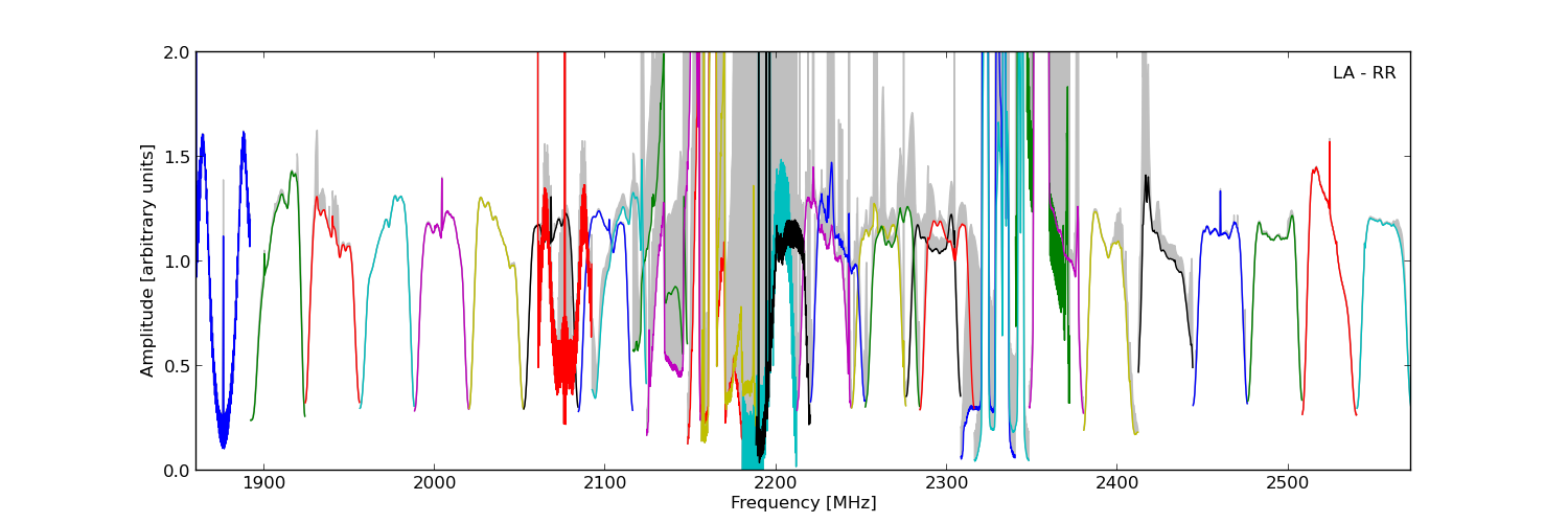 Total power spectrum in arbitrary units. The solid lines indicate the mean value and the shaded area the peaks.