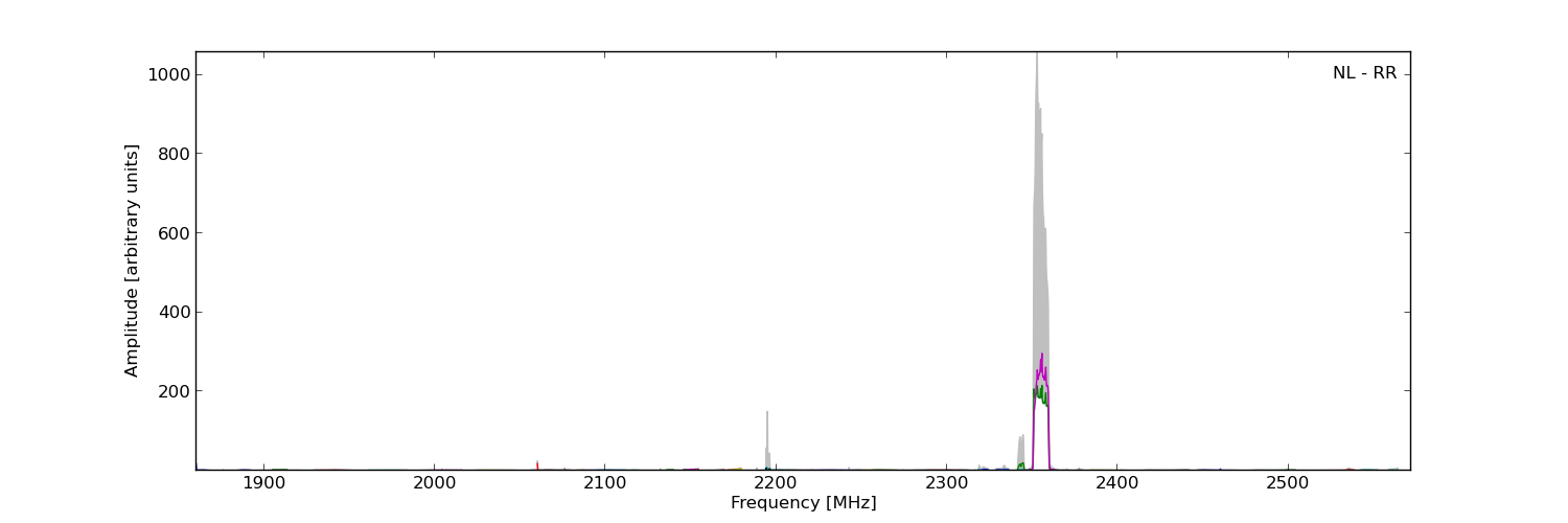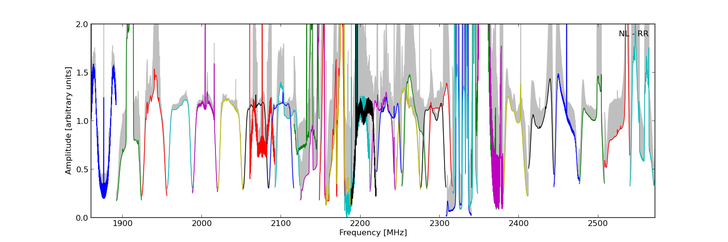 Total power spectrum in arbitrary units. The solid lines indicate the mean value and the shaded area the peaks.