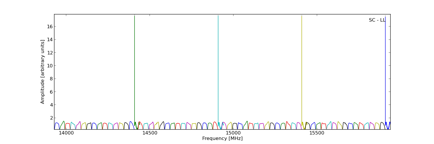 Total power spectrum in arbitrary units. The solid lines indicate the mean value and the shaded area the peaks.