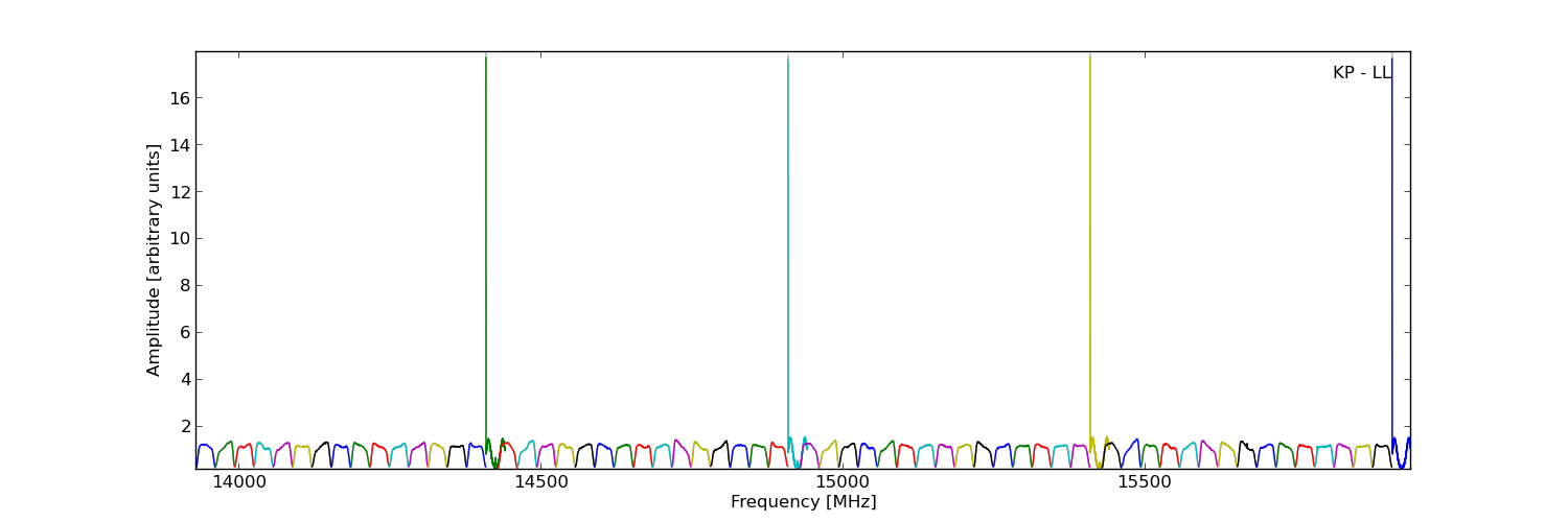 Total power spectrum in arbitrary units. The solid lines indicate the mean value and the shaded area the peaks.