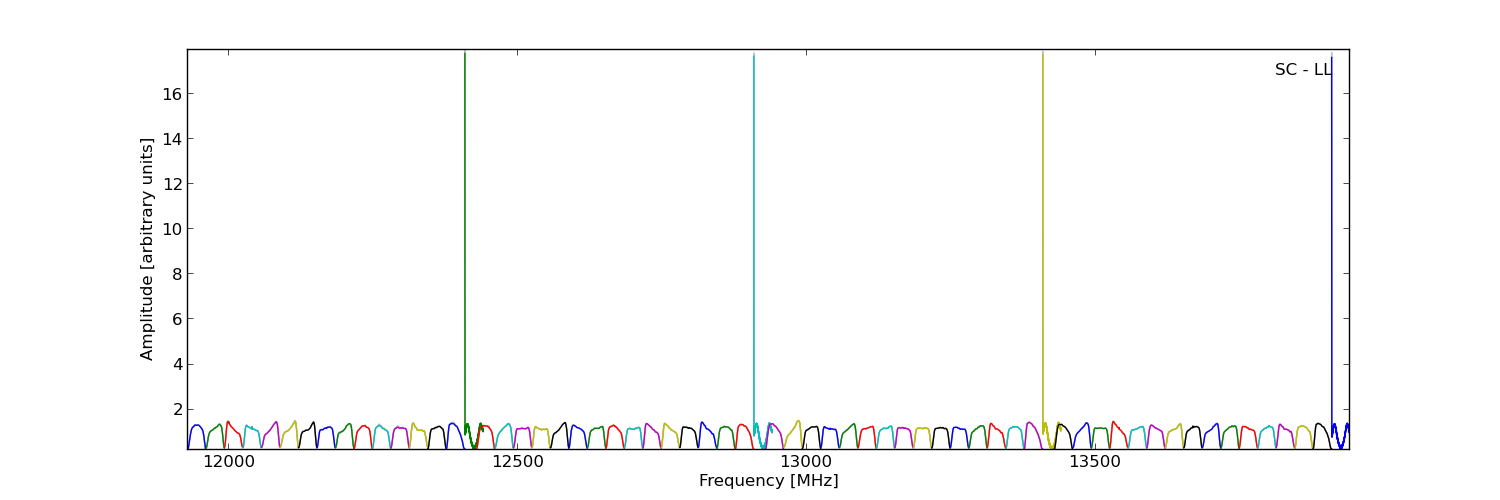 Total power spectrum in arbitrary units. The solid lines indicate the mean value and the shaded area the peaks.