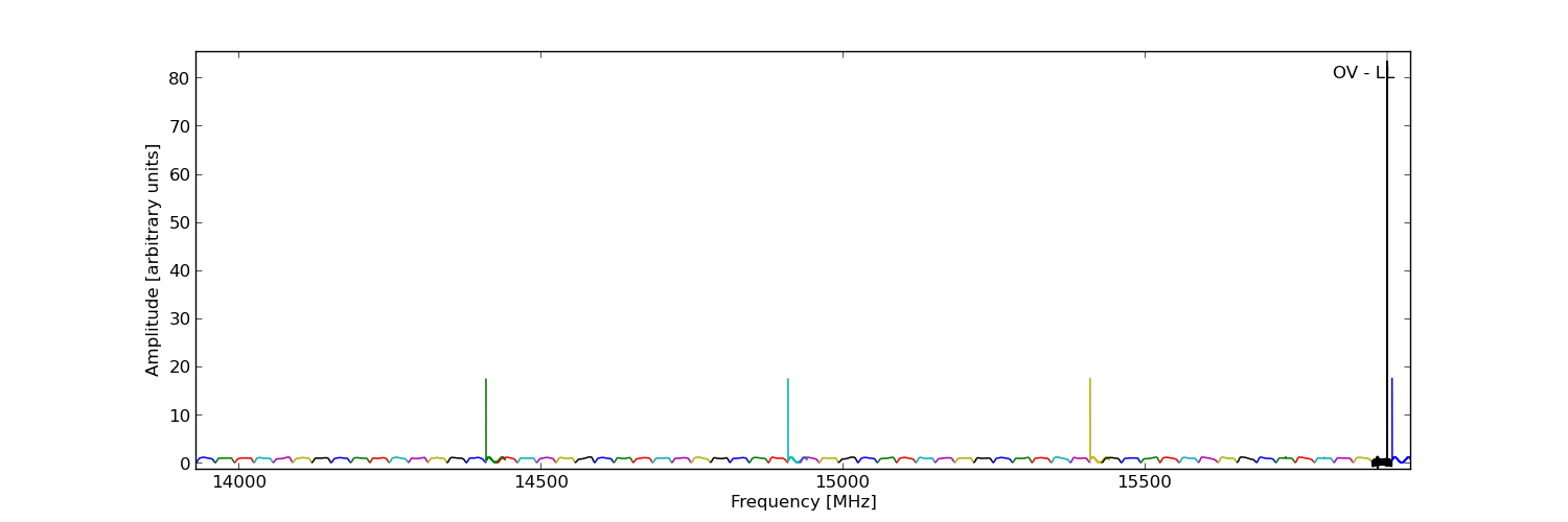 Total power spectrum in arbitrary units. The solid lines indicate the mean value and the shaded area the peaks.