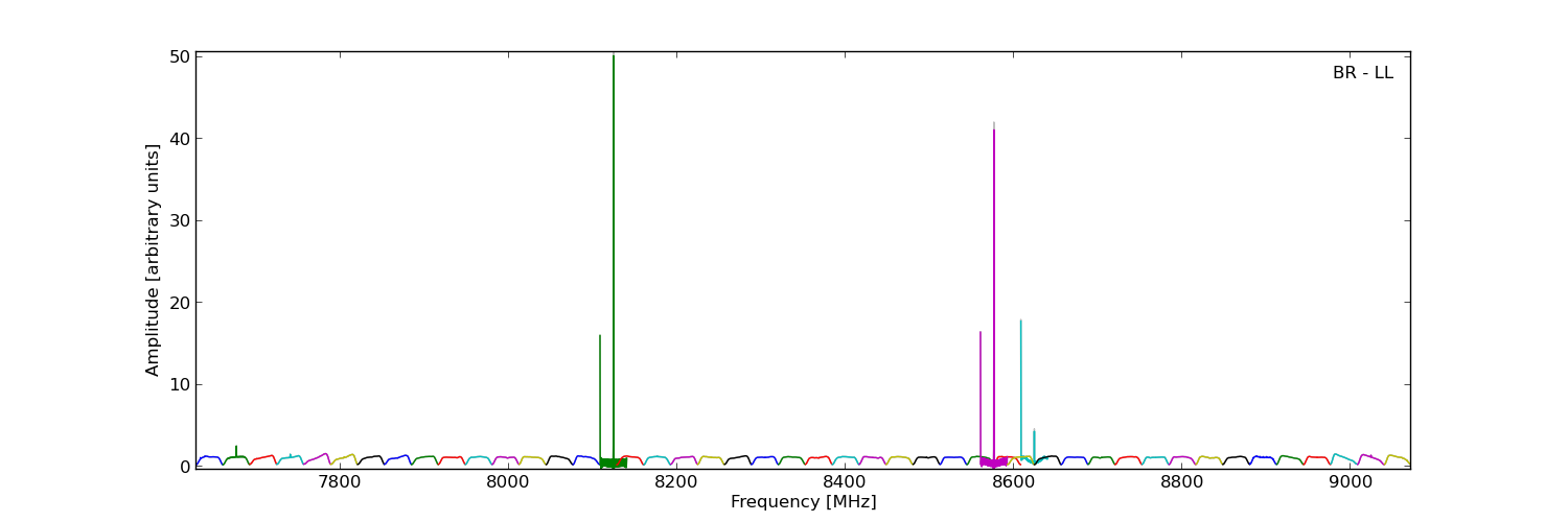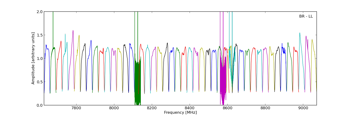 Total power spectrum in arbitrary units. The solid lines indicate the mean value and the shaded area the peaks.