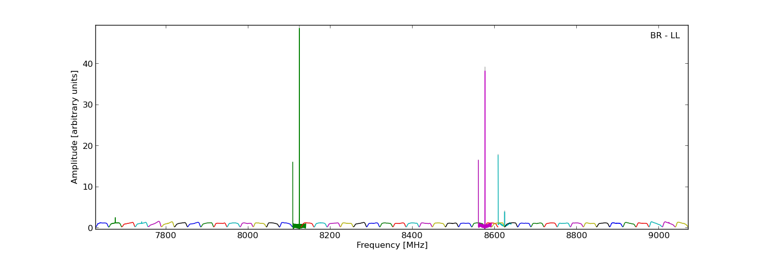 Total power spectrum in arbitrary units. The solid lines indicate the mean value and the shaded area the peaks.