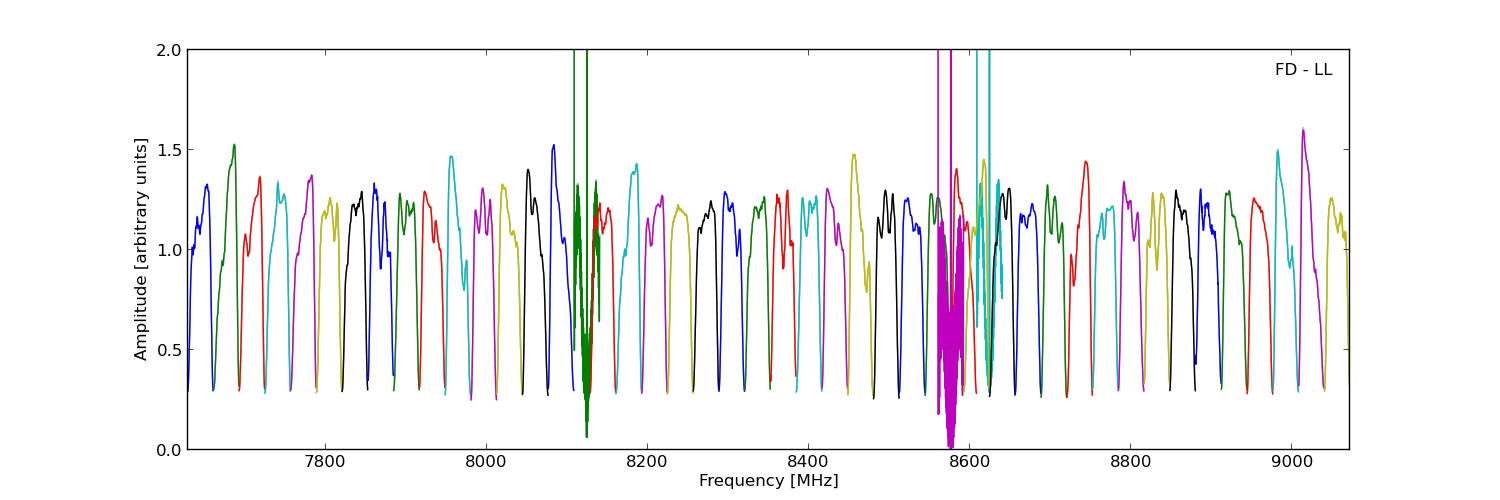 Total power spectrum in arbitrary units. The solid lines indicate the mean value and the shaded area the peaks.