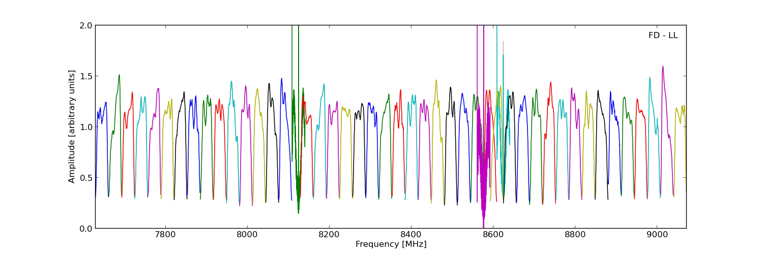 Total power spectrum in arbitrary units. The solid lines indicate the mean value and the shaded area the peaks.